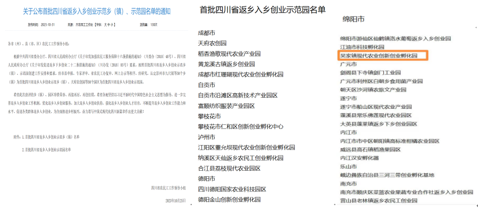 獲評“首批四川省返鄉(xiāng)入鄉(xiāng)創(chuàng)業(yè)示范園”稱號